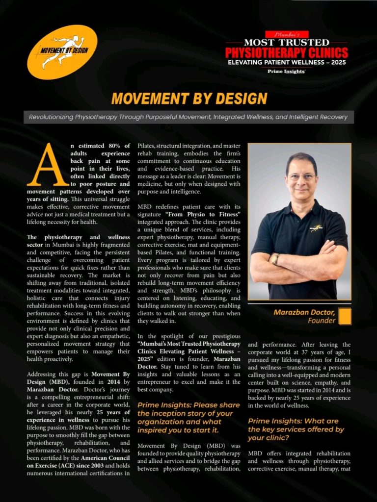 Movement By Design, located in Colaba, Mumbai, is dedicated to promoting women’s health through personalized fitness and physiotherapy programs. Their expert team offers services tailored to meet the unique needs of women at various life stages.